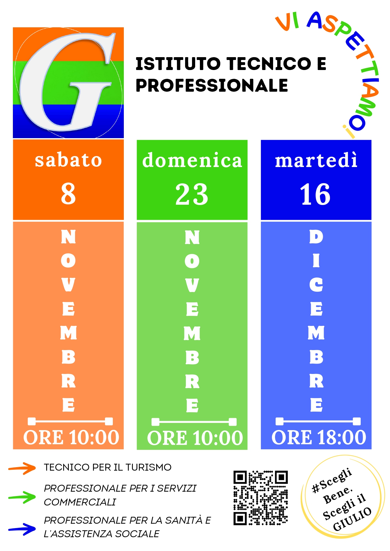 È possibile prenotare visite guidate per piccoli gruppi presso il nostro istituto nei giorni di lunedì e giovedì dalle ore 10:00 alle ore 12:00 scrivendo una mail a orientamentoiisgiulio@didalabgiulio.it